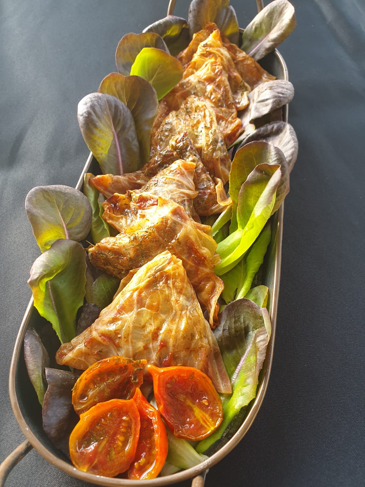 כרוב ירוק להוציא את השורש שלו לחתוך את הלב ולהוציא . לעטוף בניילון ולהכניס לפריזר ללילה . הכרוב יוצא עם עלים רכים שמאפשרים לעבוד מיד ולא צריך לבשל אותו ! מילוי : 1 וחצי כוס קינואה מבושלת ( אני עשיתי 3 צבעים קינואה אדומה שחורה ורגילה אני מבשלת כל סוג לחוד ) בצל חתוך לקוביות קטנות לטגן אגוזי מלך לקצוץ פטרוזיליה לקצוץ דק לערבב את הכל לתוך הבצל המטוגן להוסיף תבלינים מלח, פלפל שחור כף לימון סחוט אבקת בצל שום כתוש לערבב הכל ביחד ולמלא את הכרוב רוטב 2 כפות רסק עגבניות כוס מים מלח מיץ מלימון טרי חצי כף פפריקה להרתיח ולשפוך עם כף על הכרוב להכניס לתנור עם מכסה לשעה על חום 160 מעלות .