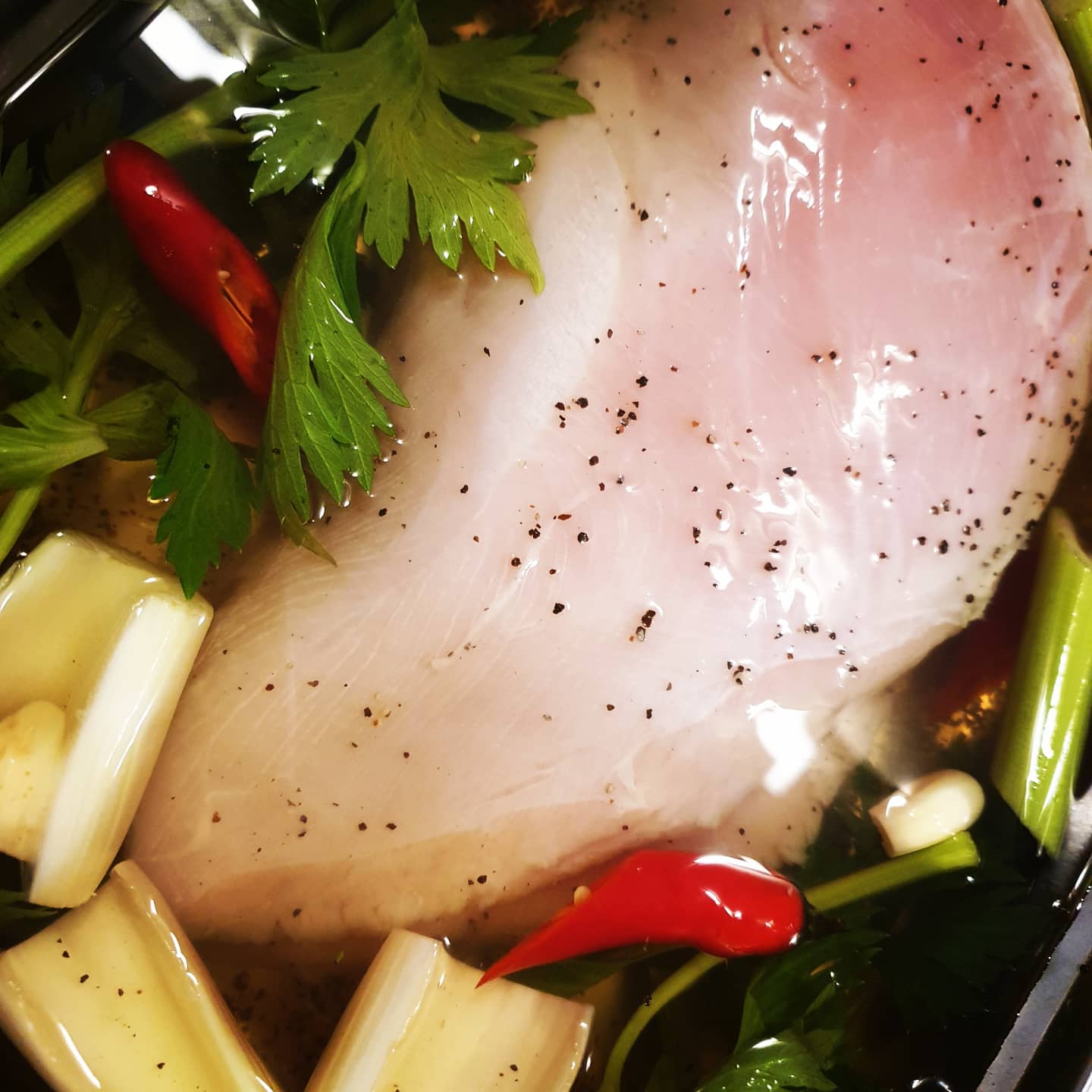 לערבב את הכל לעסות את החזה הודו להניח לשעה לספוג טעמים.